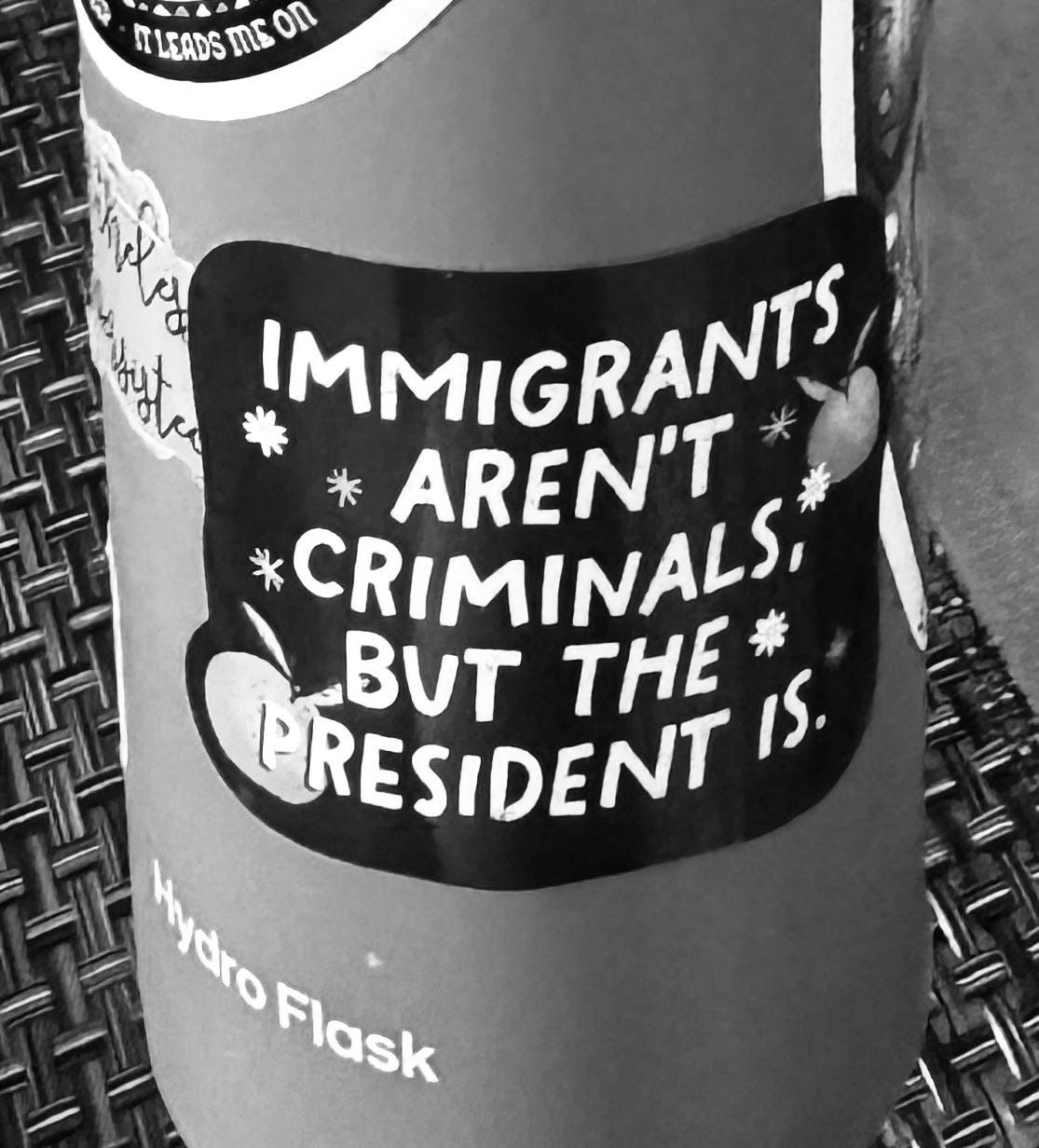 We know the president is in fact a convicted criminal and being an immigrant is not a crime. Immigrants are what make America rich in culture, language, traditions, diverse religions, food, music, all of it. We are all immigrants damnit, except indigenous peoples who have been here since, well, forever.